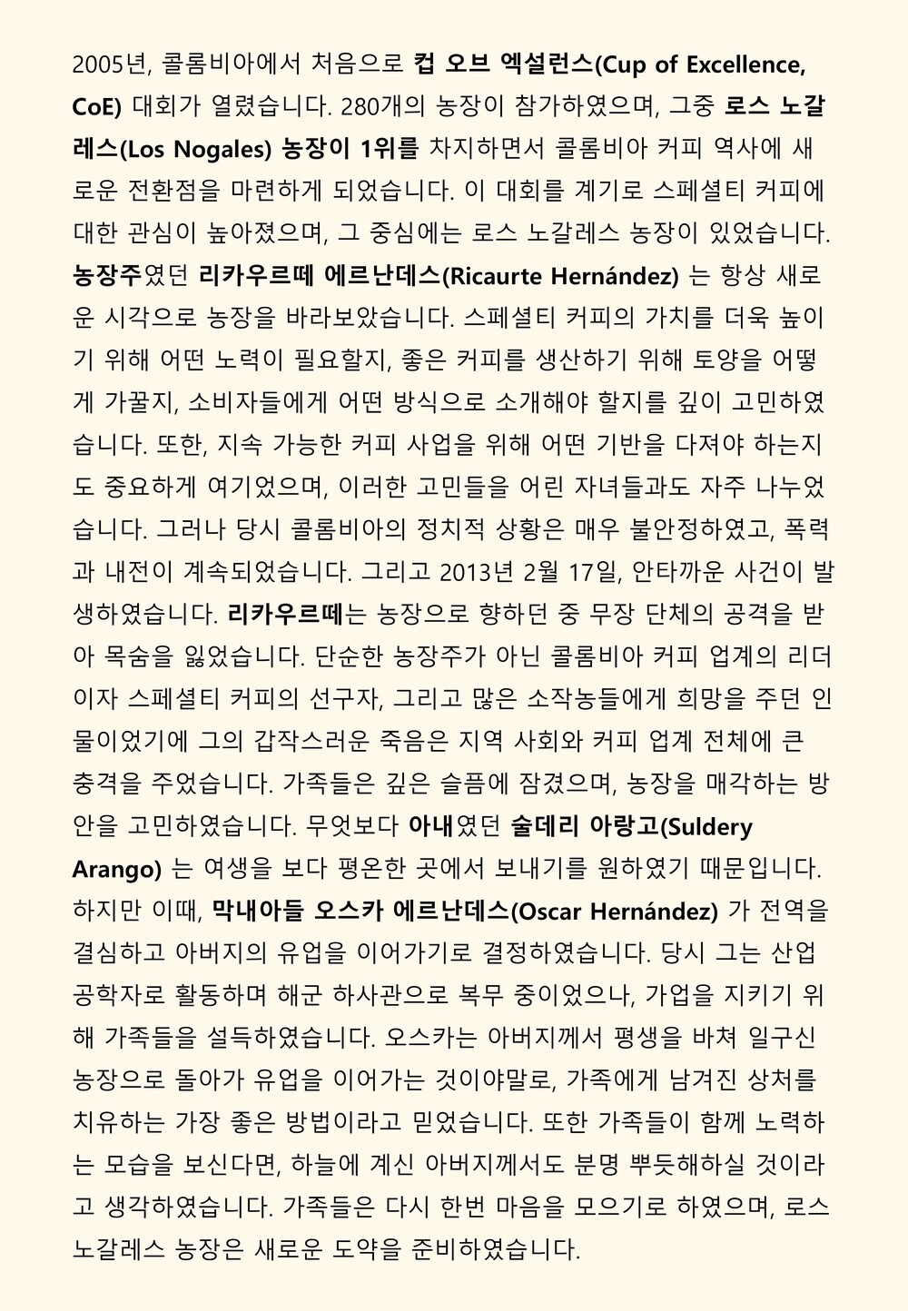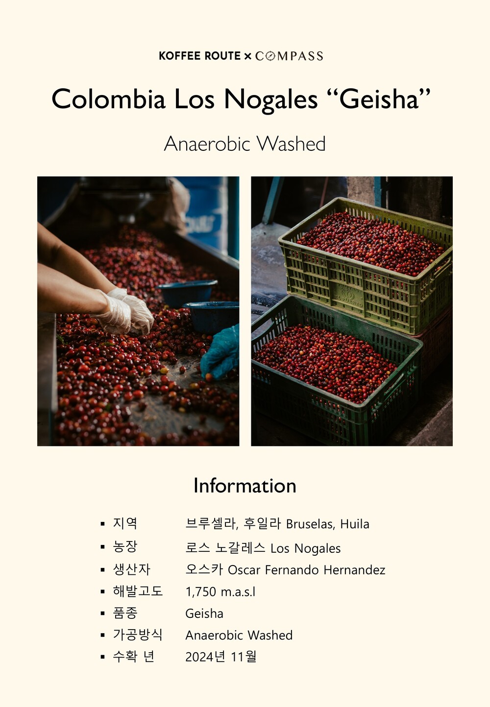 콜롬비아 로스노갈레스 "게이샤" (무산소워시드)